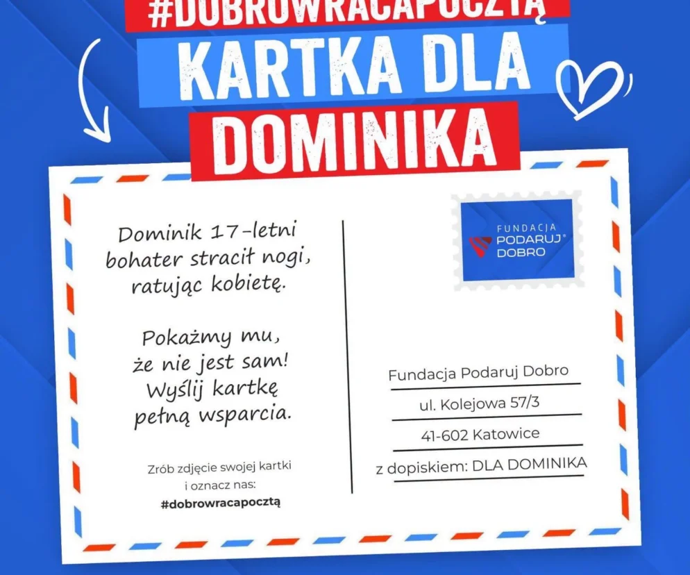 Kartki ze słowami wsparcia dla Dominika można wysyłać na adres: